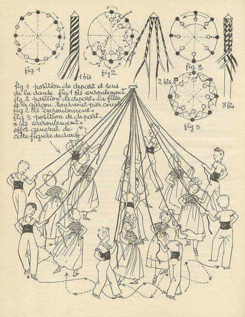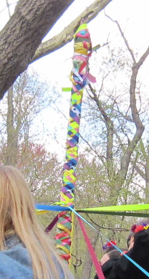 Blessed Beltane! Many Pagans and Wiccans dance the maypole for this May 1st holiday, representing the union of the Goddess (the fertile Earth that embraces the pole) and the God (the phallic pole and sperm-like ribbons). Folks find ribbons that are the color(s) related to what they’d like to manifest in their lives — e.g. red for passion, green for money and growth, pink for good health, blue for calmness, etc. — and weave those intentions to connect them to the deities and make the magic happen.