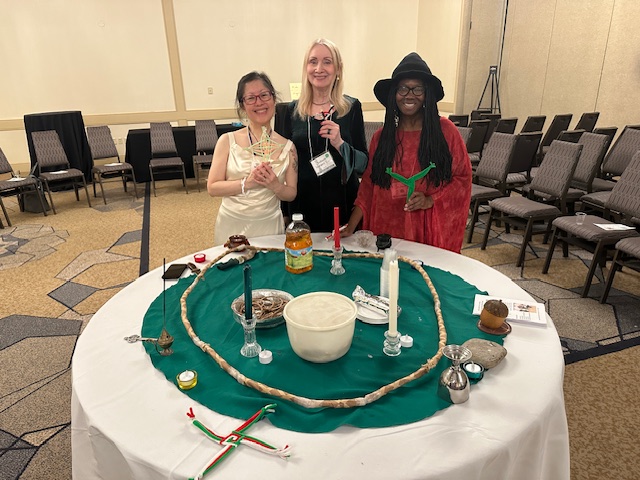 We thank all of the board members, volunteers, fellow presenters, and attendees for creating such a marvelous magical event in a safe welcoming space. It was a pleasure facilitating our Brigid’s Hoop Dance Ritual and Hekate’s Labyrinth Ritual for the first time for everyone at SSC, and we hope all the participants had meaningful experiences with us — we received loads of positive feedback during and after the rites and thank you for coming up to us and letting us know! We will post a few photos here; if you took pictures that you’re willing to share with us and allow us to post on social media, please send them to Nanci at thecraftyplum@gmail.com.